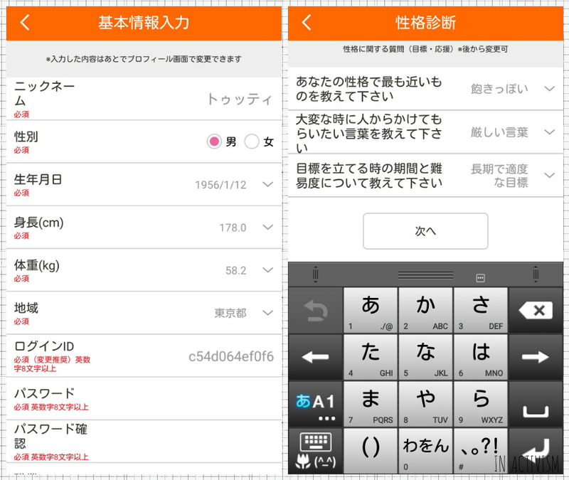 本アプリ、まず始めに基本情報やら質問事項に答えていきます。
