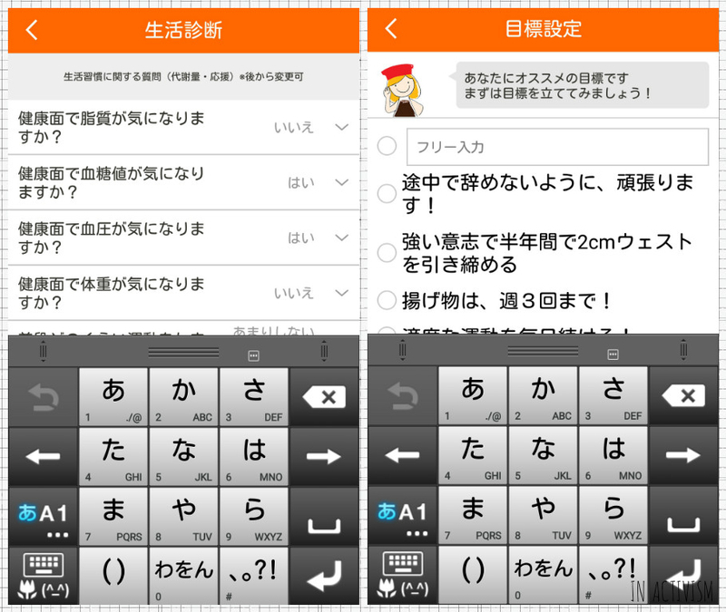 生活診断や目標設定など、本気で体質改善を考えている人にはよさげな感じ。
