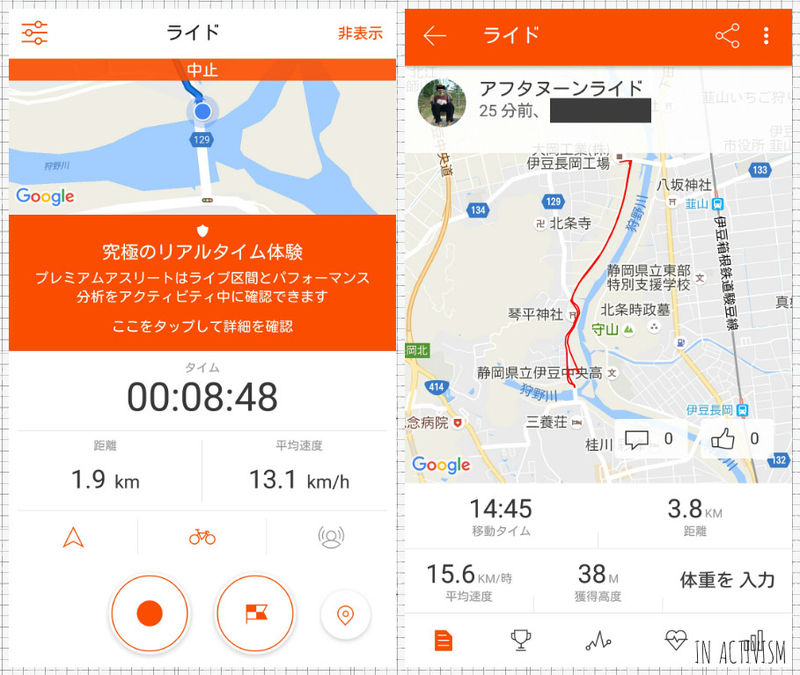 本アプリ、ルートの記録や、スピードなどの記録ができて、中々優秀なんです。